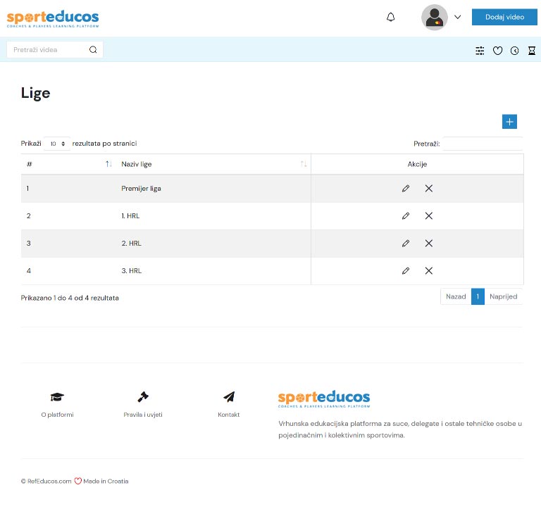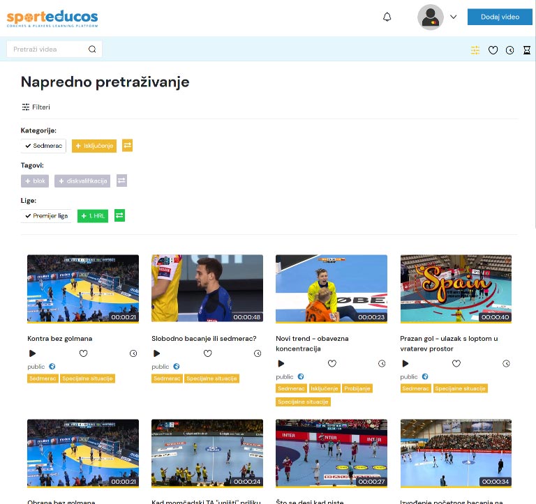Mogućnost kreiranja i odabira liga kojima je video namijenjen