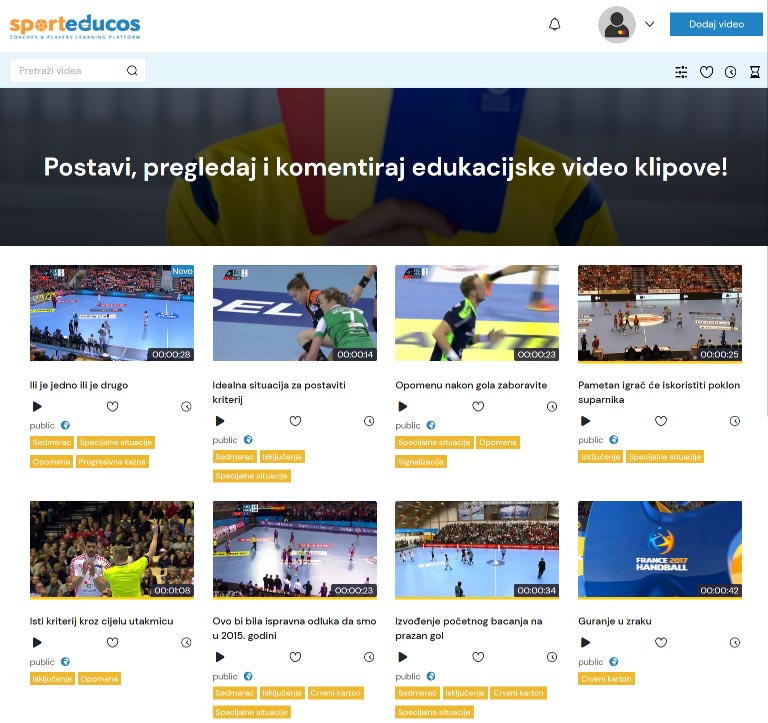 Objavljivanje javnih videa sa naslovom i opisom svake situacije