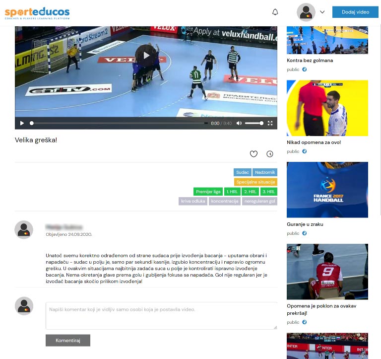 Naša specijalizirana web aplikacija je namijenjena za trenere, igrače i druge članove klubova ili saveza u pojedinačnim i kolektivnim sportovima putem video klipova.